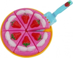 De ronde taart met zes punten en een taartschep stimuleert delen, tellen en oefent de fijne motoriek bij het “snijden” en serveren.