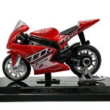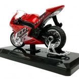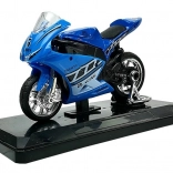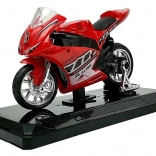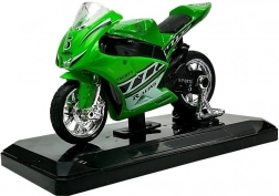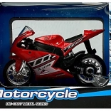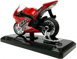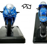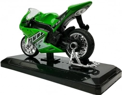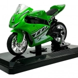 Realistisch vormgegeven sportmotor op schaal 1:18 combineert metaal en kunststof voor een lange levensduur en een geweldige uitstraling. Het gedetailleerde design met verchroomde wielen en race-stickers maakt het een aantrekkelijke toevoeging aan kinderkamer en modelverzameling.