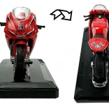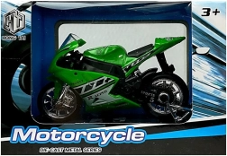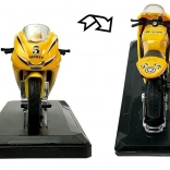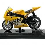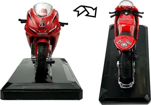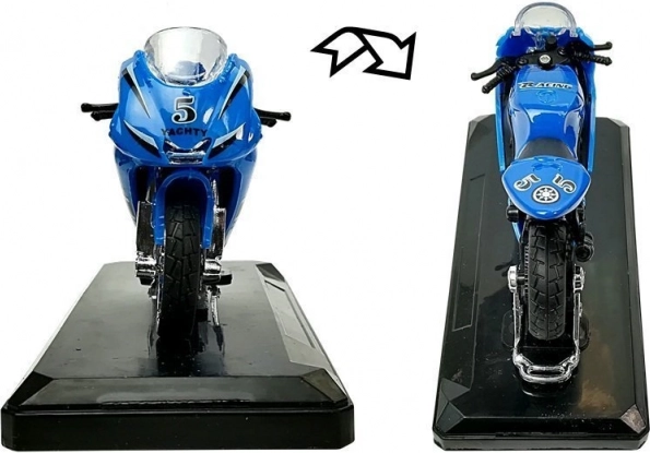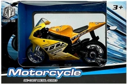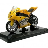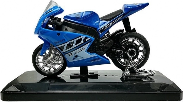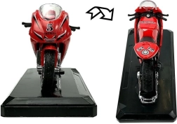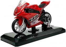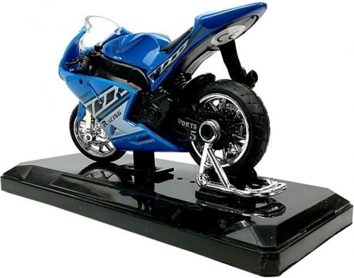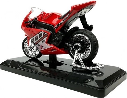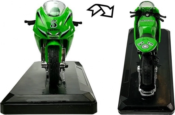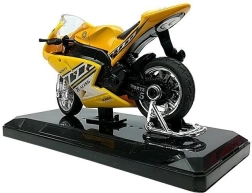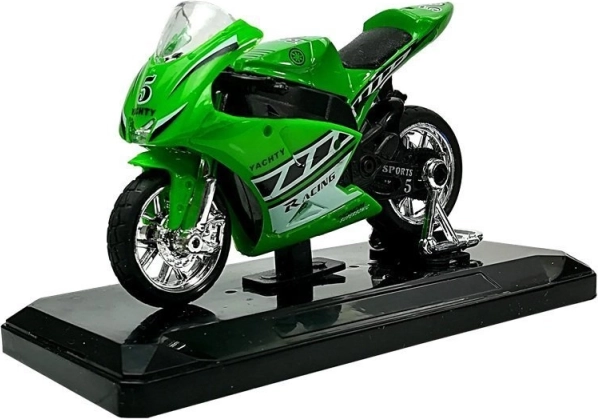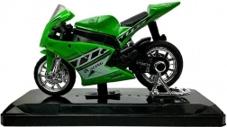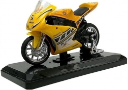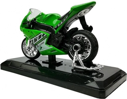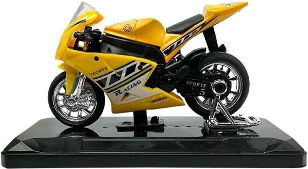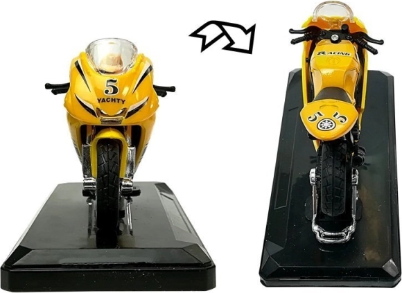 Stijlvol model van een sportmotor op schaal 1:18, perfect voor kleine en grote verzamelaars. Biedt geluidseffecten bij het indrukken van het achterste deel, draaibaar stuur, frictiemotor voor voorwaartse rit en een afneembare sokkel voor presentatie. Verkrijgbaar in 4 kleuren – geel, rood, groen en blauw.