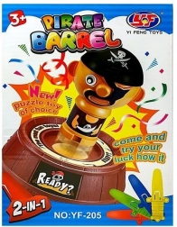 Piraat, vat met openingen, 16 gekleurde zwaardjes, geluksrad met kleuren