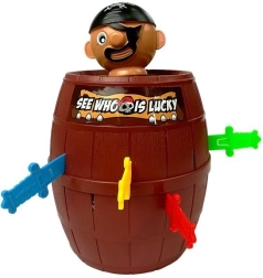 Dit vrolijke piratenspel vermaakt zowel kinderen als volwassenen. Plaats de piraat in het vat, schuif om de beurt de stokjes/zwaardjes naar binnen en kijk bij wie de piraat omhoog springt. Eenvoudige principes, snelle rondes en veel plezier maken dit spel ideaal voor familieavonden en kinderfeestjes.