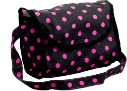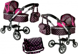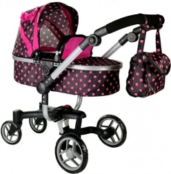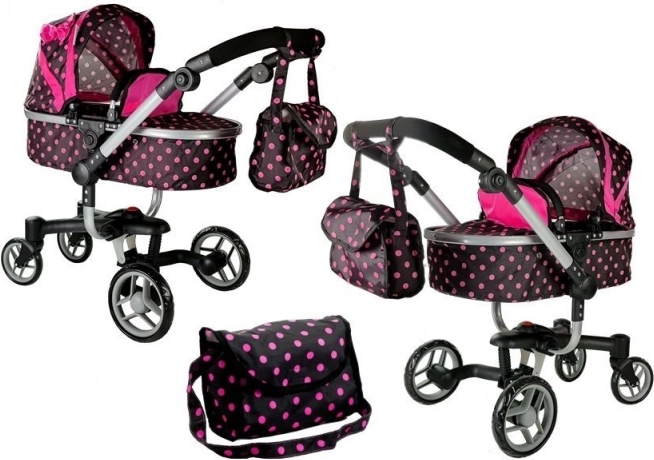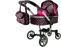 De poppenwagen is ontworpen in een elegante zwart-roze combinatie met subtiele stippen die elk kind zullen aantrekken.