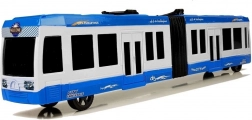 De realistische gelede bus met vliegwielaandrijving in het blauw zal elke kleine chauffeur blij maken. Dankzij de rubberen banden en het middengewricht stuurt en manoeuvreert hij gemakkelijk, terwijl de frictieaandrijving het kind toelaat de rijsnelheid te bepalen. Een geweldig speelgoed voor de ontwikkeling van motoriek, coördinatie en logisch denken bij kinderen.