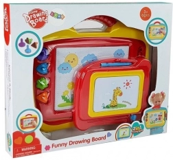 De magnetische pen en vier stempelvormen stimuleren creativiteit. Met de schuif wis je in een oogwenk de hele tekening.