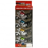 De beweging van de motorfietsen wordt aangedreven door een eenvoudig opwindmechanisme — kinderen kunnen ze naar achteren trekken en kijken hoe snel ze vooruit rijden.