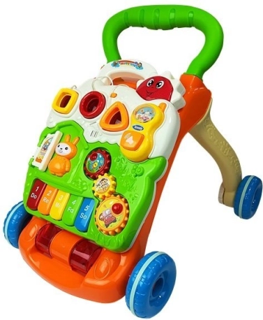 Vrolijke educatieve loopwagen met pianootje die kinderen motiveert tot de eerste stapjes en tegelijk hun zintuigen en motoriek ontwikkelt. Biedt een stabiele constructie, stille wielen met silicone... Meer tonen
