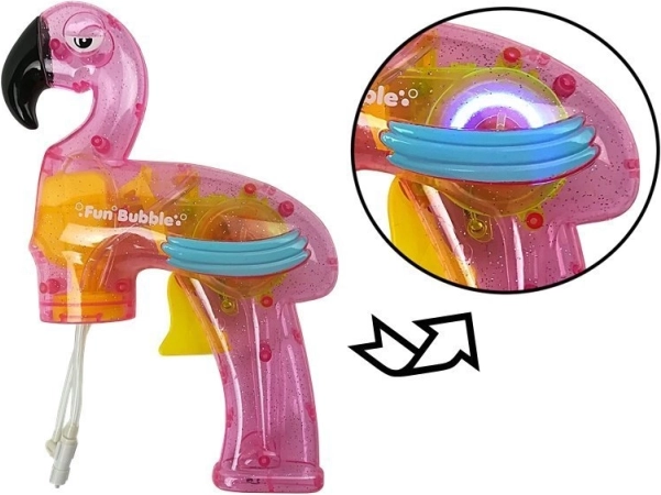 Breng uw plezier tot leven met het unieke flamingo-vormige bellenpistool. Perfecte combinatie van pistoolontwerp met een aantrekkelijk flamingo-ontwerp.