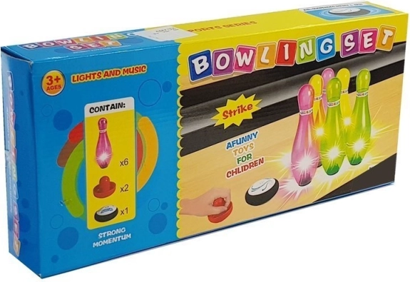 Kleurrijke bowling set met zes kegels en lichteffecten is ideaal vermaak voor kinderen en volwassenen. Helpt bij het ontwikkelen van precisie en coördinatie.