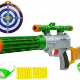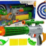 Speelgoed dat wapens imiteert komt vaak voor bij jongensspellen. Ze maken het spel afwisselender en helpen verschillende speelscenario’s te bedenken. Het zijn ook elementen die het gevoel versterken dat ze dappere strijders en helden zijn die tegen misdaad vechten. Het gepresenteerde schuimgeweer voor kogels zal jongens van enkele jaren zeker urenlang bezighouden en hen in staat stellen veel interessante spellen te organiseren, geïnspireerd door hun fantasie.