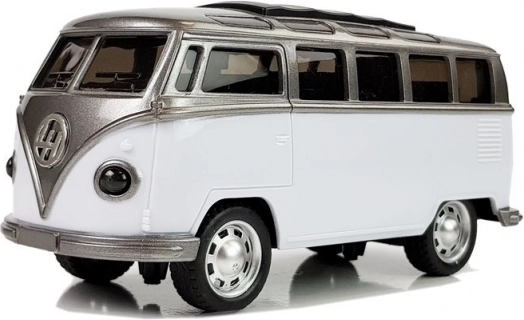 Ontdek het plezier met het witte busmodel “ogórek”, dat uitblinkt door zijn precieze afwerking en realistische details. Dankzij de vliegwiel- (pull-back) aandrijving rijdt de bus na het terugtrekken vanzelf weg, terwijl licht- en geluideffecten de speelervaring nog intenser maken.