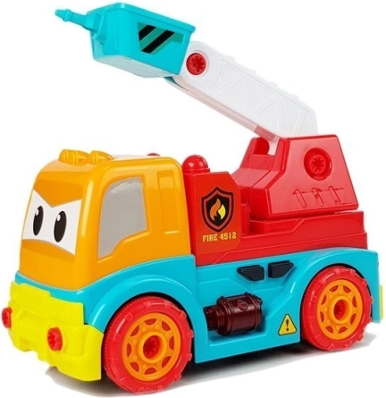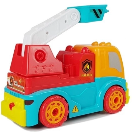 Een leuke plastic brandweerauto om uit elkaar te halen voor kleine klusjesmannen combineert de passie voor brandweer met de vreugde van monteren. Dankzij de beweegbare ladder met mandje, licht- en geluidseffecten en de meegeleverde schroevendraaier ontwikkelen kinderen logisch denken, fijne motoriek en geduld tijdens het in- en uit elkaar zetten.