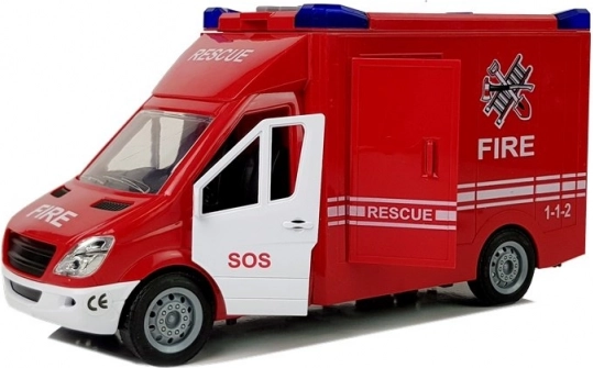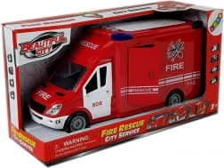 Verander de kinderkamer in een reddingsactie. Deze rode brandweerauto biedt geweldige speelfuncties en stimuleert fantasie en motoriek. Door de knoppen op het dak in te drukken worden lichtende zwaailichten en authentieke geluidseffecten geactiveerd. Dankzij de vliegwielaandrijving hoef je de auto alleen maar naar achteren te trekken en hij rijdt vanzelf vooruit.