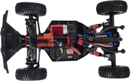 Het model biedt onafhankelijke wielophanging voor precieze besturing en stabiliteit in zwaar terrein. 2,4GHz radio levert een betrouwbaar bereik tot 80 m zonder interferentie, terwijl de Li-ion accu 7,4 V 1500 mAh tot 15 minuten rijdtijd mogelijk maakt. Perfect voor reactietraining, races en freestyle rijden.