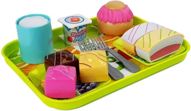 De set bevat een breed scala aan accessoires - van het dienblad tot bordjes en verschillende realistisch uitziende desserts, die kinderen in staat stellen de vreugde van koken te ervaren.
