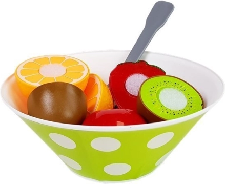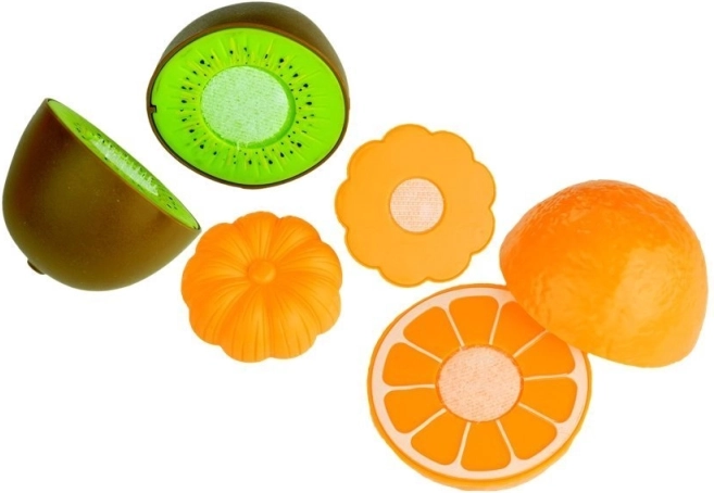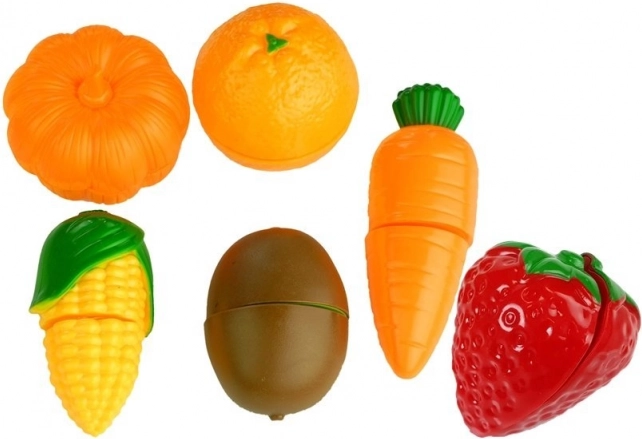 De set bevat verschillende soorten plastic fruit en groenten die gemakkelijk te splitsen en te combineren zijn, wat de ontwikkeling van motorische vaardigheden stimuleert.