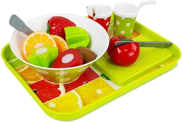 De set bevat een rijke verscheidenheid aan elementen, van een mixer met een snelheidsknop, via diverse plastic fruit en groenten, tot bekers met rietjes en keukenaccessoires. Op speelse wijze maken kinderen kennis met voedingsmiddelen zoals pompoen, maïs, sinaasappel of kiwi.