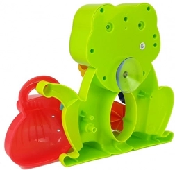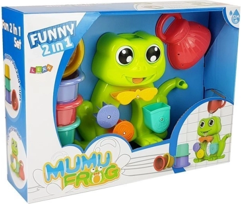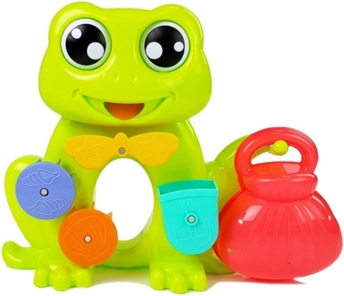 Deze schattige kikker met draaiende elementen nodigt kinderen uit om in het bad te spelen. Bij het gieten van water in het hoofdje wordt een klein waterrad geactiveerd dat een waterstroom via de mond van de kikker creëert. Daarnaast heeft de kikker ogen die draaien als er water doorheen stroomt, wat de aandacht van elk kind trekt en hen amuseert.