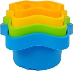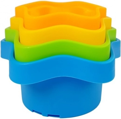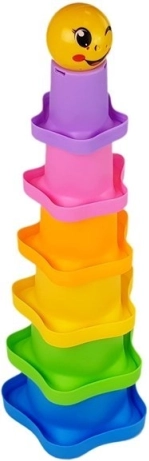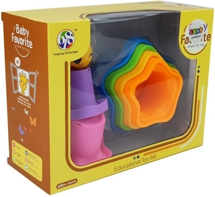 Elk bekertje heeft een andere kleur en een stervorm. Het speelgoed ziet er niet alleen mooi uit, maar ondersteunt ook de ontwikkeling van motoriek en bewegingsvaardigheden, het oefenen van de grijpreflex en het herkennen van kleuren en vormen. Het stapelen van bekertjes helpt de relaties tussen objecten van verschillende grootte te begrijpen.