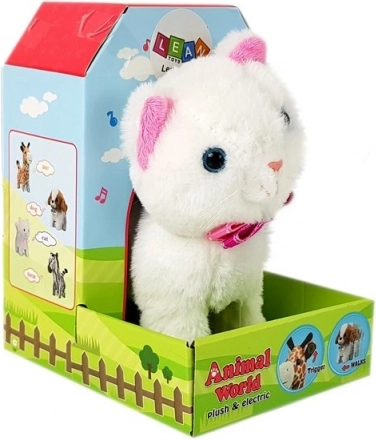 Door op het oor te drukken miauwt de kat en loopt ze; houd de knop ingedrukt om muziek af te spelen.