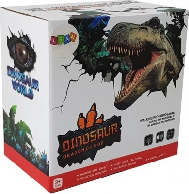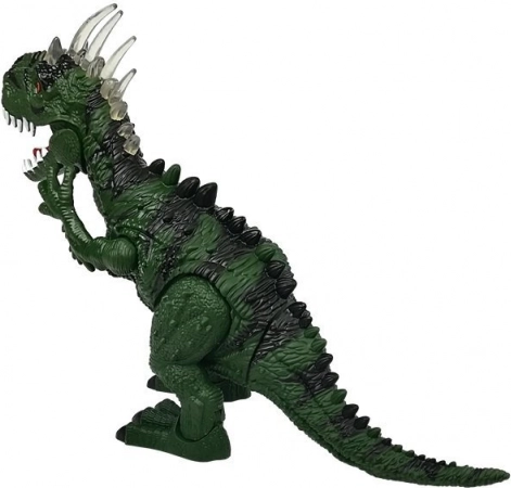 De interactieve groene batterijdinosaurus zal kleine liefhebbers van de prehistorie verrassen. Hij loopt vooruit, maakt realistische brulg eluiden, heeft lichteffecten in de “schubben” op zijn kop, legt eieren en verbergt in zijn borst een projector met het beeld van een echte tyrannosaurus. Een geweldig speelgoed dat de verbeelding stimuleert en uren speelplezier biedt.