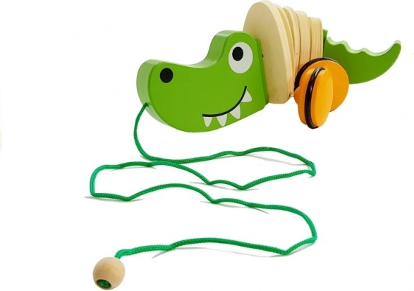 De vriendelijke groene krokodil met een glad houten oppervlak en oranje wieltjes is het ideale maatje voor wandelingen door het huis. Tijdens het trekken golft zijn lichaam, waardoor het spel nog leuker wordt.