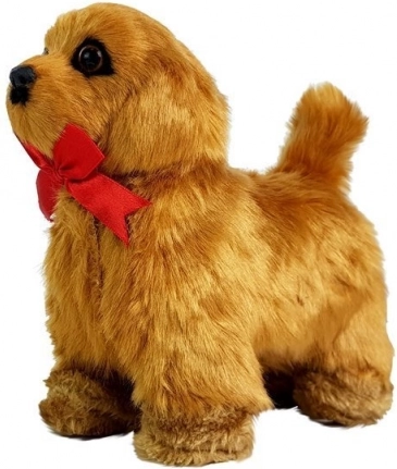 Vervul de kinderdroom van een eigen huisdiertje. Het interactieve hondje met een zachte, bruine vacht reageert op een aai – het blaft, kwispelt en beweegt zijn kopje. Na het indrukken van het buikje loopt het naar voren, blaft opnieuw en speelt een vriendelijke melodie af. Dankzij het realistische uiterlijk met donkerbruine ogen en een rode strik zullen kinderen er snel dol op zijn.