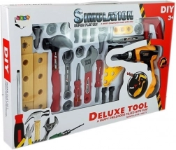 De gereedschappen zijn geheel van plastic gemaakt, wat zorgt voor veilig gebruik. De beweegbare boormachine biedt de functie om te schroeven en los te draaien - druk gewoon op de knop en de boormachine gaat aan. Elk kind beleeft uren speelplezier bij het in elkaar zetten en repareren.
