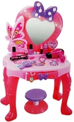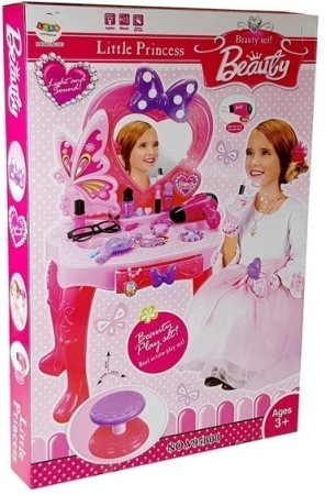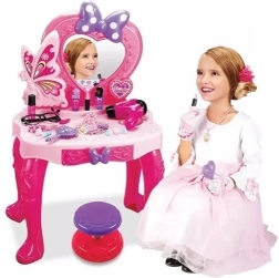 Maak kennis met deze prachtige roze kinderkaptafel, die elke kleine prinses inspireert tot eindeloze uren creativiteit en plezier. De tafel is uitgerust met een hartvormige spiegel met vlinderdecor en wordt geleverd met een reeks accessoires om kappertje te spelen.