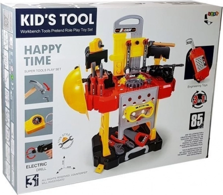 De kinderwerkbank 3-in-1 met koffer biedt een complete set gereedschappen voor kleine reparateurs. De draagbare koffer kan worden omgevormd tot een stabiele werkbank die in elke kinderkamer past. De tools helpen bij het spelen met papa en ontwikkelen handvaardigheid. De werkbank bevat 85 verschillende componenten, waaronder een elektrische boormachine en een koffer op wieltjes.