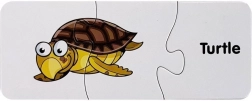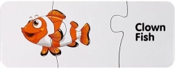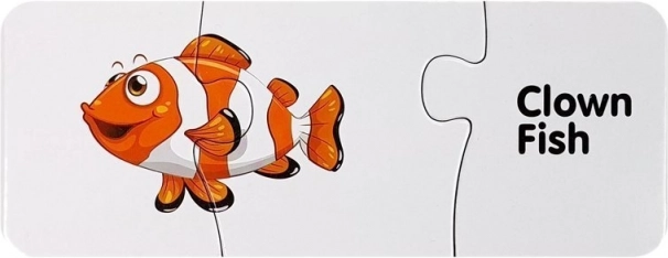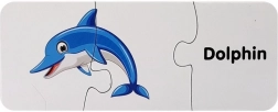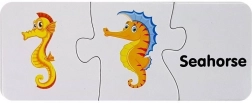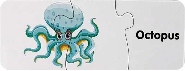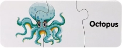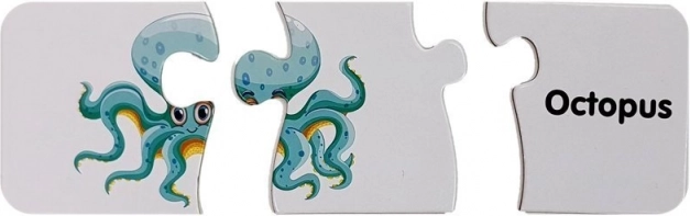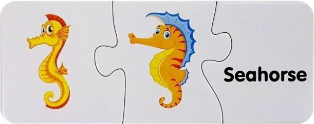 Elk puzzelstukje koppelt een schattige afbeelding van een zeedier aan zijn Engelse naam. Zo onthouden kinderen gemakkelijk nieuwe woorden en hun betekenis.