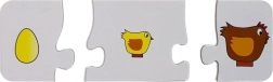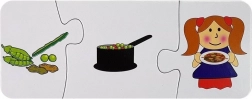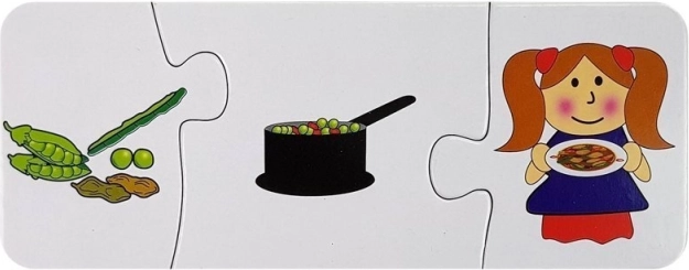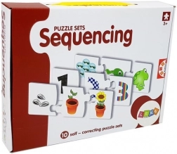Deze set sequentiepuzzels brengt leren door te spelen: kinderen verbinden afbeeldingen in een logische volgorde en ontdekken hoe uit een ei een kuiken ontstaat, een rups een vlinder wordt, hoe een plant of boom groeit en hoe voedsel ontstaat van ingrediënten tot het eindgerecht. Kleurrijke illustraties en stevige kartonnen stukjes zijn ideaal voor kleine handjes en nodigen uit tot herhaald spelen.