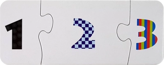 Eenvoudige driedelige puzzels met de cijfers 1–3 leren cijferherkenning en het principe van ordenen. Geschikt voor de eerste stappen in rekenen en voor het trainen van de fijne motoriek.