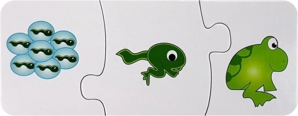 Van ei tot kuiken, van kikkervisje tot kikker, van rups tot vlinder, en de groei van planten en bomen – kinderen leggen de juiste volgorde en begrijpen veranderingen in de natuur.