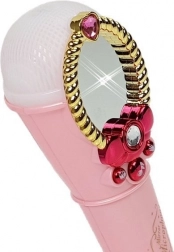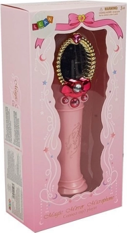 Deze roze karaoke-microfoon voor kinderen motiveert tot zingen, ritme en het eerste podiumzelfvertrouwen. Na het inschakelen verschijnt er op magische wijze een meisjesfiguurtje in het versierde spiegeltje, lichten de uiteinden van de microfoon in meerdere kleuren op en zorgen drie functietoetsen voor muziek en ritmische effecten.