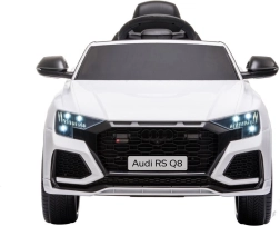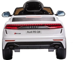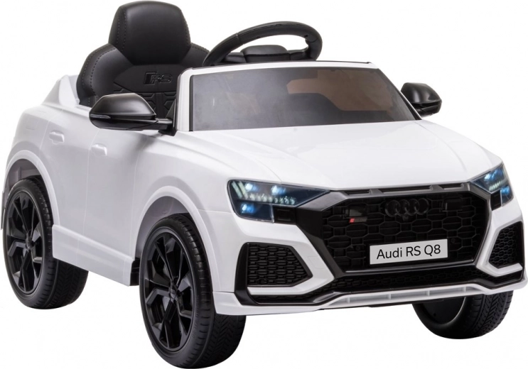De gelicentieerde Audi RS Q8 op accu combineert een aantrekkelijke sportieve look met doordachte veiligheidsfeatures. Dankzij de automatische versnellingsbak met drie snelheden past de jonge bestuurder zich eenvoudig aan het terrein en zijn of haar vaardigheden aan. Een zacht zadel van eco-leer met veiligheidsgordel en hoogwaardige afwerking zonder scherpe randen zorgen voor comfort en veiligheid.