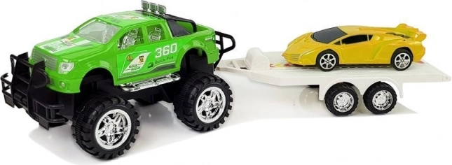 De auto met aanhanger biedt onvergetelijk speelplezier voor kinderen die graag hun eigen verhalen creëren. Trek de terreinwagen naar achteren en kijk hoe hij dankzij de wrijvingsaandrijving snel over de vloer rijdt. De aanhanger kan eenvoudig worden losgekoppeld en alle voertuigen kunnen afzonderlijk worden gebruikt.