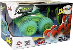 De groene dubbelzijdige RC-auto op schaal 1:24 is ideaal voor kinderen die van actie houden op land en in water. Dankzij de grote terreinbanden, de robuuste ABS-constructie en de 2,4 GHz-frequentie kan hij vooruit/achteruit en zijwaarts rijden, 360° draaien en dubbelzijdig rijden. Waterdichte afdichtingen beschermen de elektronica, zodat je plezier op verschillende ondergronden zonder compromissen beleeft.