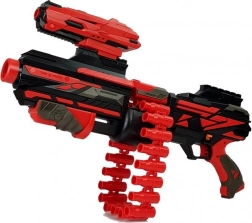 Dit rood-zwarte geweer maakt van elk spel een onvergetelijk avontuur. Dankzij het lange magazijn passen er tot 40 kogels in en is snelle schietactie mogelijk tot een afstand van 45 meter!