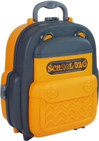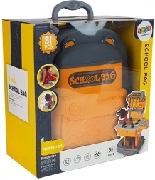 Na het openen van de rugzak vindt het kind binnenin alle essentiële onderdelen om een eigen werkplaats te creëren. De compacte constructie neemt weinig ruimte in en de hoeveelheid accessoires maakt het mogelijk om te repareren, vast te schroeven en verschillende objecten te monteren. De rugzak is uitgerust met comfortabele, verstelbare riemen, waardoor de werkplaats gemakkelijk overal mee naartoe kan worden genomen – naar de tuin, de garage, op vakantie of naar een vriendje.