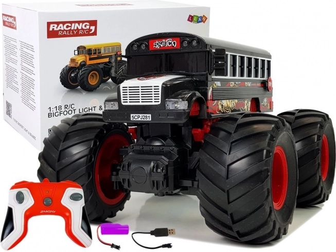 Geniet van geweldig plezier met onze afstandsbediende monstertruck die eruitziet als een schoolbus. Ontworpen om elk obstakel te overwinnen en verschillende banen te creëren, zowel binnenshuis als buitenshuis. Zijn duurzame constructie is ideaal voor dynamisch rijden.