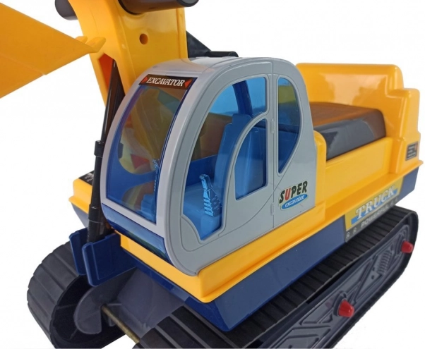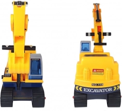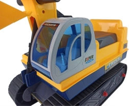 De arm van de graafmachine is eenvoudig te bedienen en kan indien nodig worden losgekoppeld. Kinderen kunnen losse materialen scheppen en verplaatsen en echte bouwwerkzaamheden naspelen.