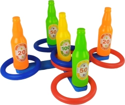 Dit kleurrijke spel voor kinderen vanaf 3 jaar biedt snelle fun en gezonde competitie. Het doel is eenvoudig: gooi ringen om flesjes met verschillende puntenwaarden en verzamel zoveel mogelijk punten. Dankzij de opvallende kleuren en cijfers begrijpen kinderen de regels snel en kunnen ze meteen beginnen.