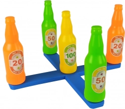 De stabiele kruisvoet en vijf kunststof flesjes van hoogwaardige, stevige materialen zorgen voor veilig spel. Het spel is gemakkelijk mee te nemen en in een handomdraai op te zetten in de tuin, op de speelplaats of in de kinderkamer. Het stimuleert motoriek, concentratie en teamwork.