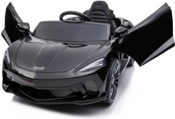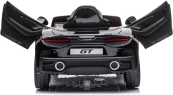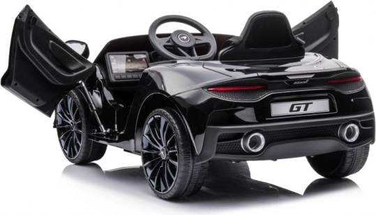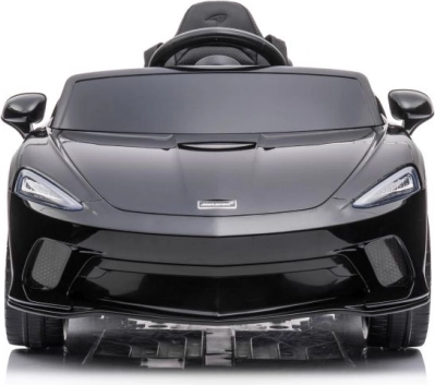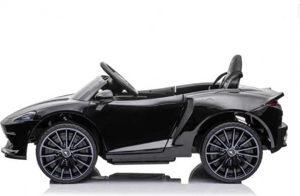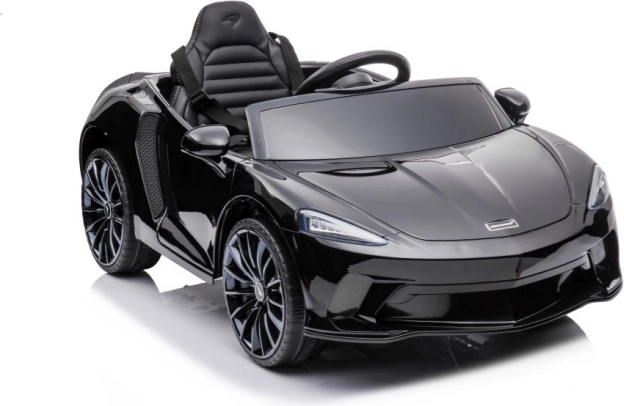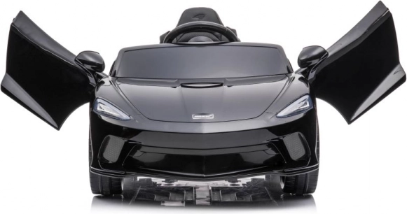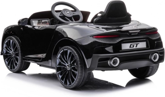 De zwarte McLaren GT kinderauto imiteert het uiterlijk van echte sportauto's met alle details.