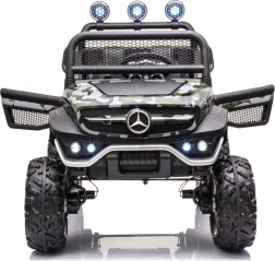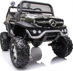 Elektrische auto Unimog S voor kinderen is het ideale vervoermiddel voor kleine avonturiers, met een robuust ontwerp en camouflagekleur voor een realistische uitstraling.