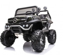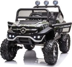 Deze elektrische kinderauto Unimog S is een perfecte keuze voor kleine bestuurders die verlangen naar avontuur en plezier in de buitenlucht. Hij biedt een realistische uitstraling dankzij de camouflagekleur en interessante details: