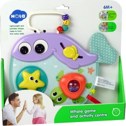 De interactieve walvis combineert plezier en leren in één. Tijdens het spelen oefenen kinderen de coördinatie van beide handen, de grijpreflex en de concentratie. Voor leuke geluidsprikkels zorgt de kleine schildpad met rammelaar, de ster draait om zijn as en andere schuif- en draaielementen met kralen nodigen uit om te ontdekken.