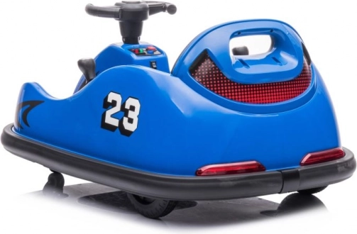 De blauwe kinderbumperauto met nummer 23 en Hot Racing race-accenten zorgt voor actievol rijden, zelfs in kleinere ruimtes. Dankzij de compacte afmetingen en zwenkwielen biedt hij precies manoeuvreren en soepel draaien op de plaats. De zitting met rugleuning en de beschermrand rondom verhogen de veiligheid en het comfort tijdens het rijden.