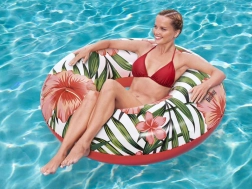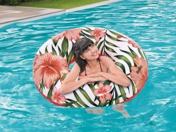 Geniet van de zomer met de BESTWAY-zwemband met een diameter van 119 cm en tropische bloemenprint. Gemaakt van duurzaam PVC, geschikt voor jongeren 12+ en volwassenen, ideaal voor zwembad, strand en meer. Eenvoudig opblazen en leeg laten lopen, een veilig terugslagventiel en compact verpakt voor op reis.