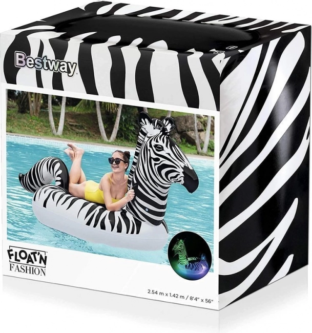 Geniet van de zomer met een opblaasbaar zebramatras voorzien van LED-verlichting, dat ook ’s nachts oplicht. Deze stijlvolle float is ideaal voor ontspanning en plezier in het water.